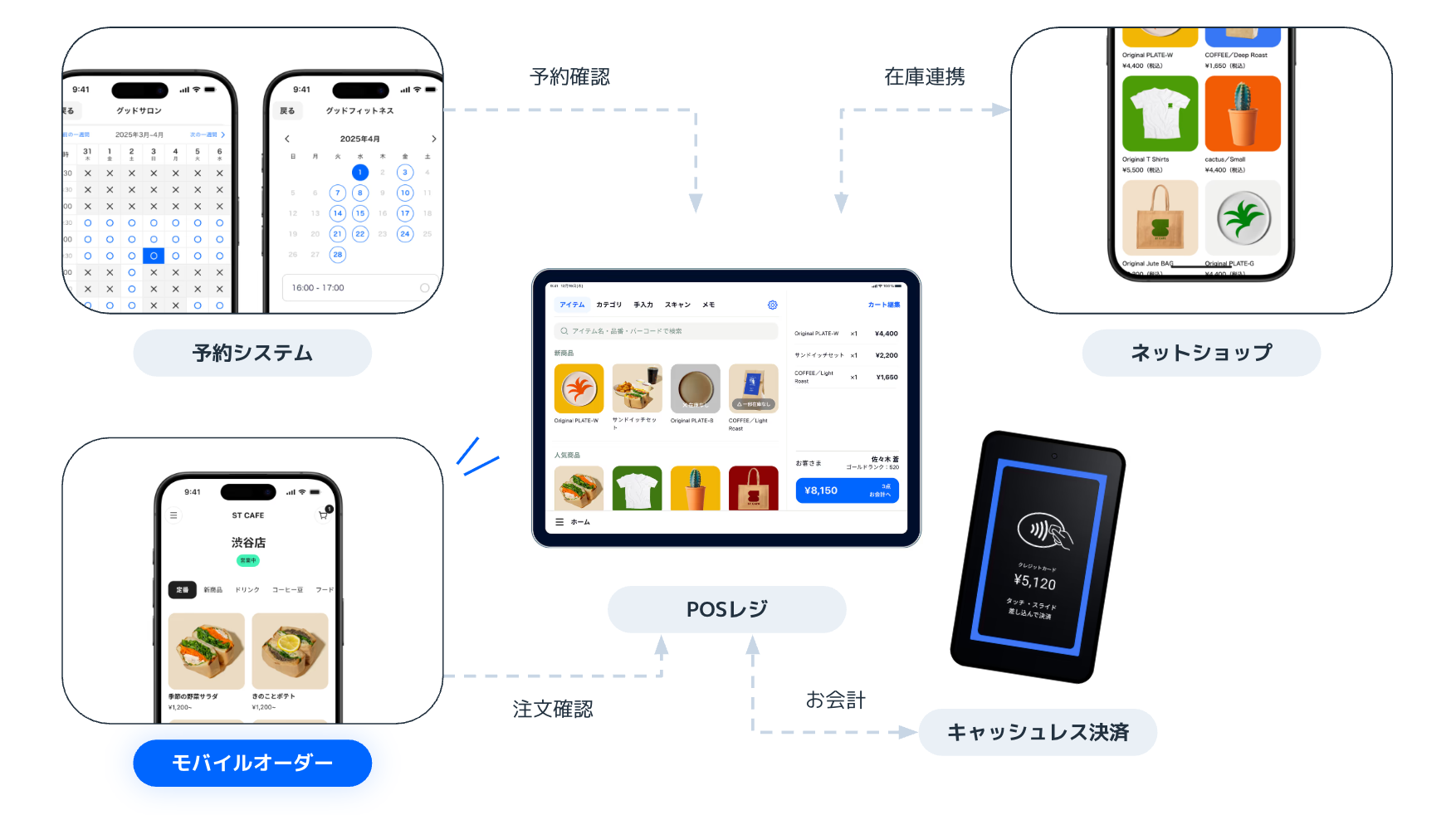モバイルオーダーに加えて、POSレジを導入することで、売上や在庫を一元管理できます。